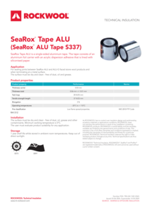 Featuring an aluminium foil backing with acrylic dispersion adhesive, self-adhesive SeaRox Tape ALU provides a uniform, durable finish to SeaRox ALU-G or ALU faced stone wool insulation installations. Unlike many generic foil tapes, it is also approved for low flame spread per the IMO 2010 FTP Code, while a paper release liner ensures quick and easy installation. Complete your insulation installation with confidence using SeaRox Tape ALU.